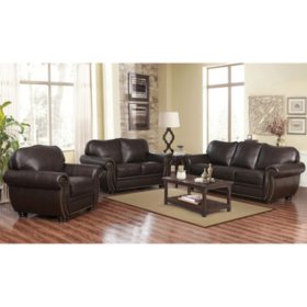 Sophie Top Grain Leather Sofa Loveseat And Armchair Set Sam S Club
