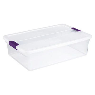This 29 quart clear storage container with lid is great for storing and organizing items ranging from off season clothes to books pretty much anything.